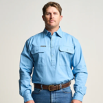 KILCOY | Mens Half Button Long Sleeve Work Shirt - Sky Blue